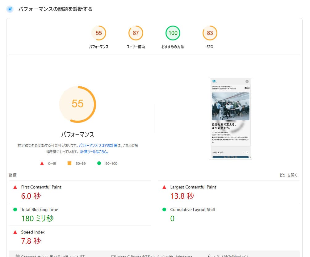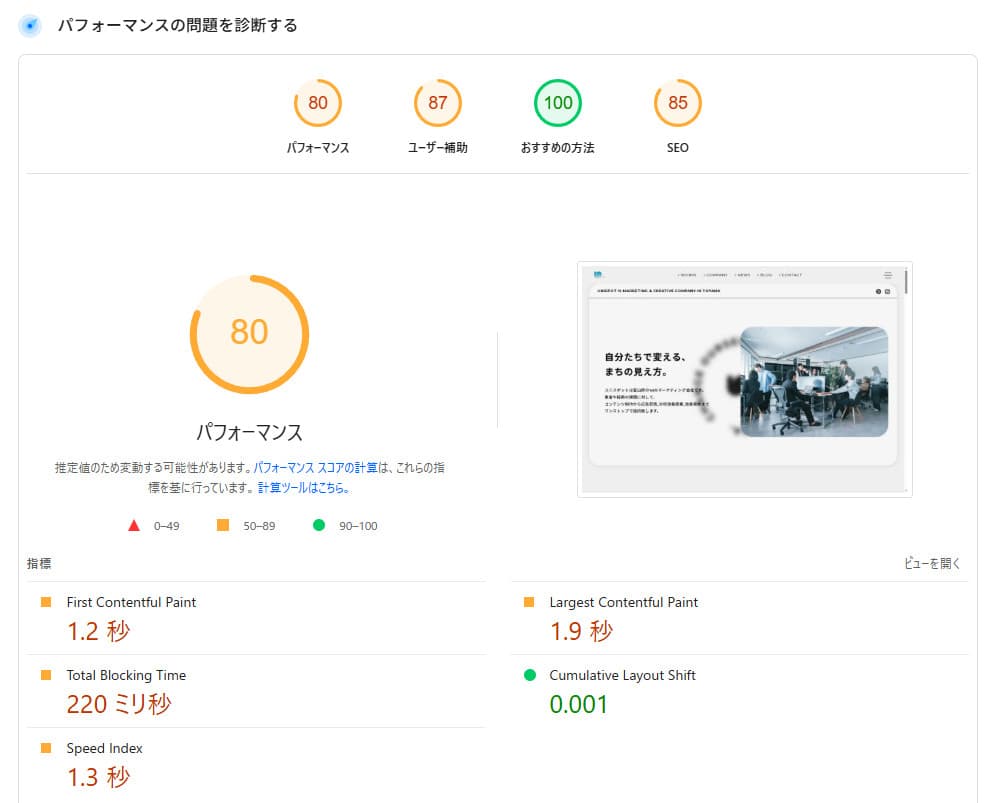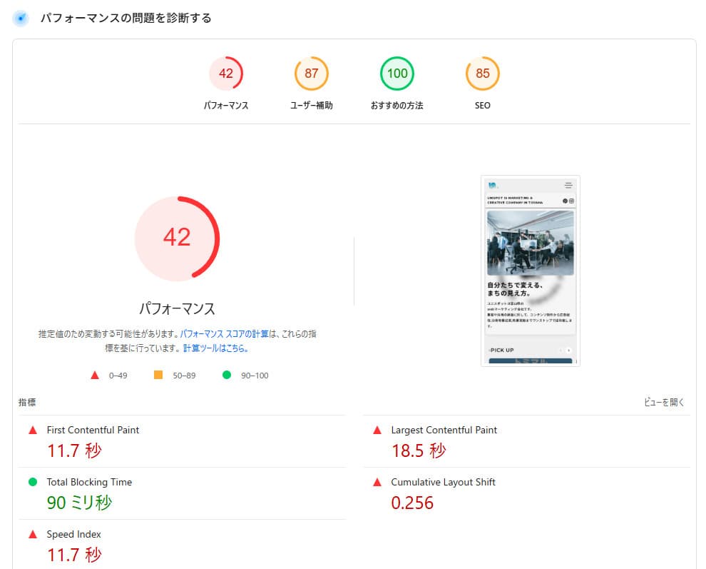 となっており、多くの場合、メインビジュアルが表示されるまでの時間がスコアに直結しています。