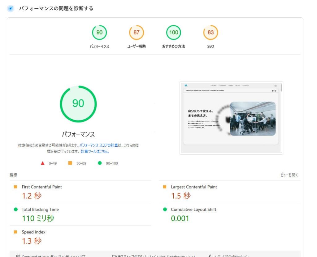 <link rel="preload" href="mv_img.jpg" as="image" fetchpriority="high">これで再度スコアチェック。